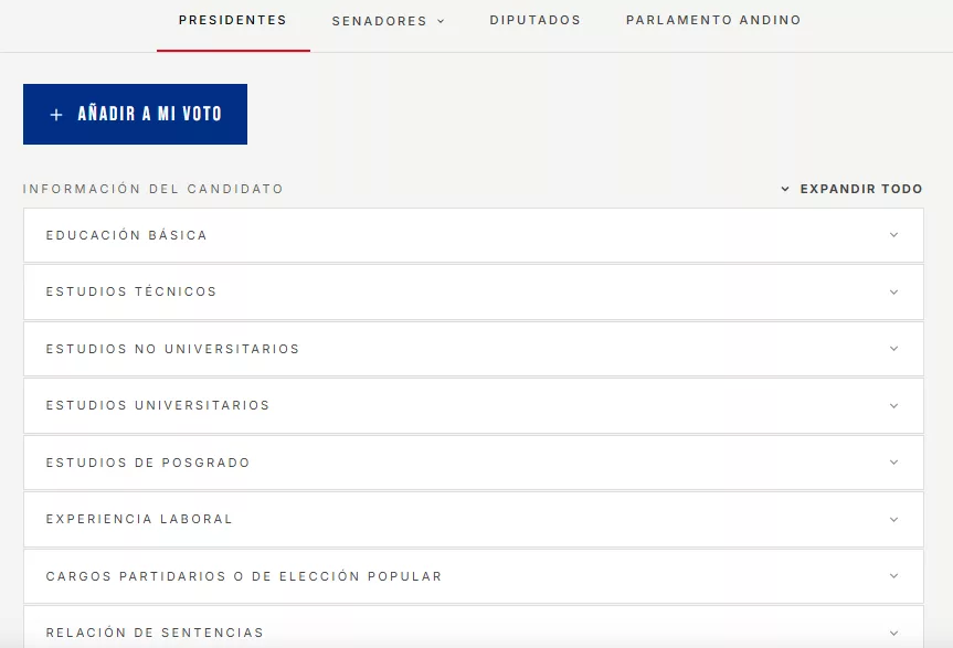 - Explorar candidatos por cada cargo